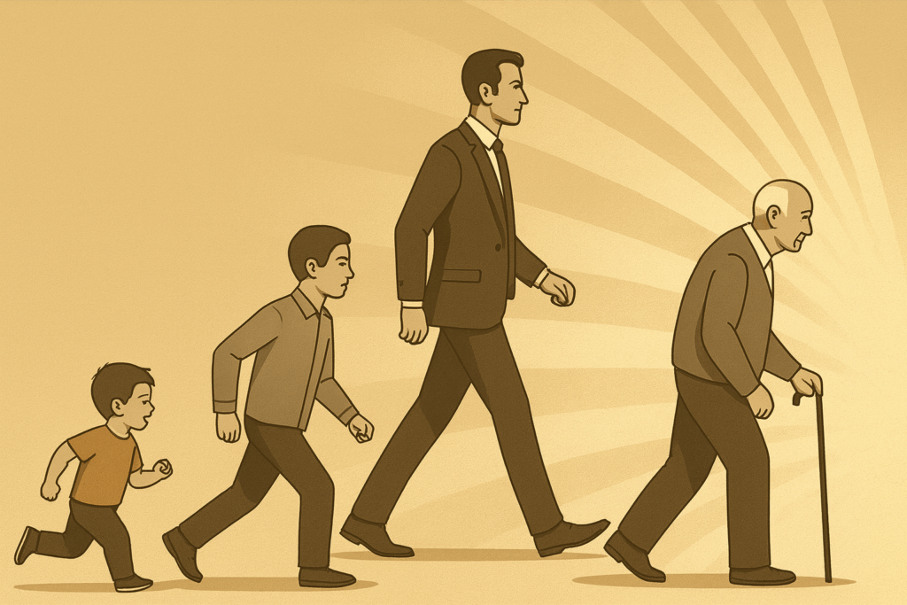 Když se řekne „střední věk“, většina z nás si představí, že život je teprve v půli cesty. Podle výzkumů vnímání ale realita vypadá jinak. Ve čtyřiceti letech máme za sebou už více než čtyři pětiny prožitého života a před sebou jen asi 18 %. Nejde přitom jen o biologii, ale o vnímání času, který nám zbývá. A tedy o energii, zdraví, schopnost objevovat nové věci a tvořit vztahy. Střední věk by neměl být bodem stagnace, ale okamžikem pro přehodnocení priorit. Jak chcete naložit se zbytkem svého času? Vždyť z hlediska vnímání je polovina našeho času na Zemi pryč, už když je nám 10 let! Vítejte v logaritmickém pekle stárnutí.